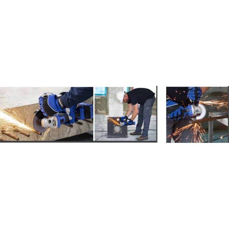 Der 18-V-Winkelschleifer mit einer Drehzahl von 9000 U/min und einem Scheibendurchmesser von 125 mm ermöglicht schnelles und präzises Schneiden und Schleifen von Stahl und Holz.