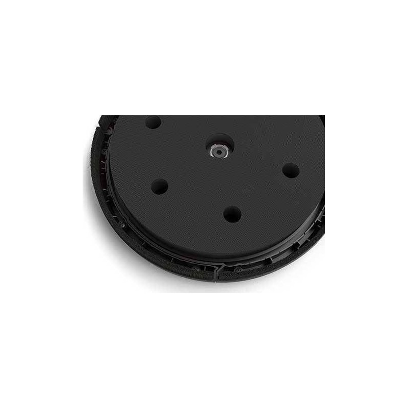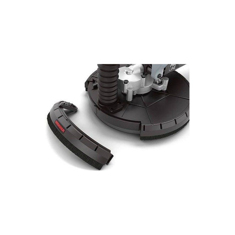 Um die Gesundheit des Anwenders der Spachtelschleifmaschine zu schützen, muss der entstehende Staub schnell und effizient vom Arbeitsplatz abgeführt werden. Deshalb verfügt die MENZER LHS 225 PRO VARIO über eine Antriebsscheibe mit 6 Öffnungen. Diese Scheibe ist zusätzlich von einem elastischen Bürstenkranz umgeben, der bei unebenen Oberflächen für eine gute Abdichtung sorgt.