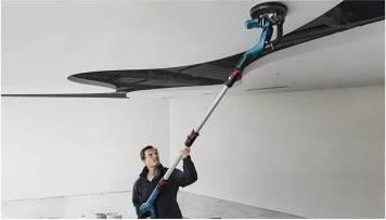 • Der patentierte, extrem flexible Schleifkopf gleitet mühelos über Decken und Wände. Die Deckenabsaugung reduziert das Gewicht des Werkzeugs und sorgt für ermüdungsfreieres Arbeiten. Der ergonomische L-förmige Zusatzgriff erhöht den Komfort und verringert die durch die Streckung beim Gebrauch verursachte Muskelanspannung. Deckenabsaugung. Abnehmbare Teile. Flexibler Kopf