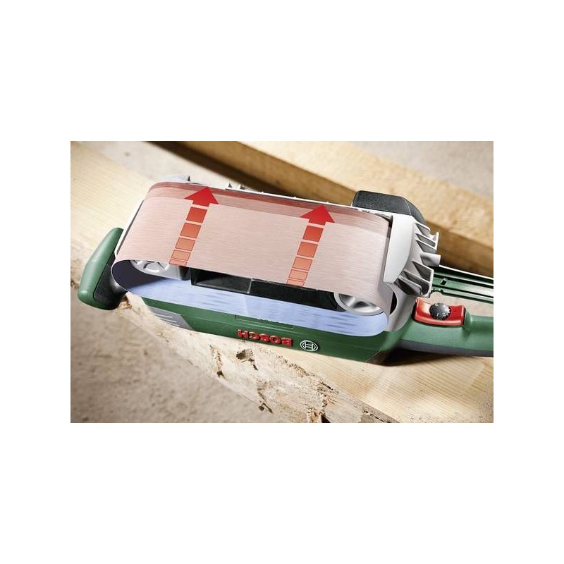 Diese Art von Schleifmaschinen erfordert die Verwendung von Schleifband. Sie eignen sich besonders zum Schleifen größerer Flächen. Ein Vorteil der Bandschleifmaschine kann ihre hohe Arbeitsgeschwindigkeit sein. Viele Modelle sind mit einer elektronischen Vorschubgeschwindigkeitsregelung und einem Staubabsaugsystem ausgestattet. Der Betrieb bei niedrigeren Drehzahlen garantiert überdurchschnittliche Präzision. Beim Grobschliff hingegen empfiehlt es sich, die Drehzahl zu erhöhen.