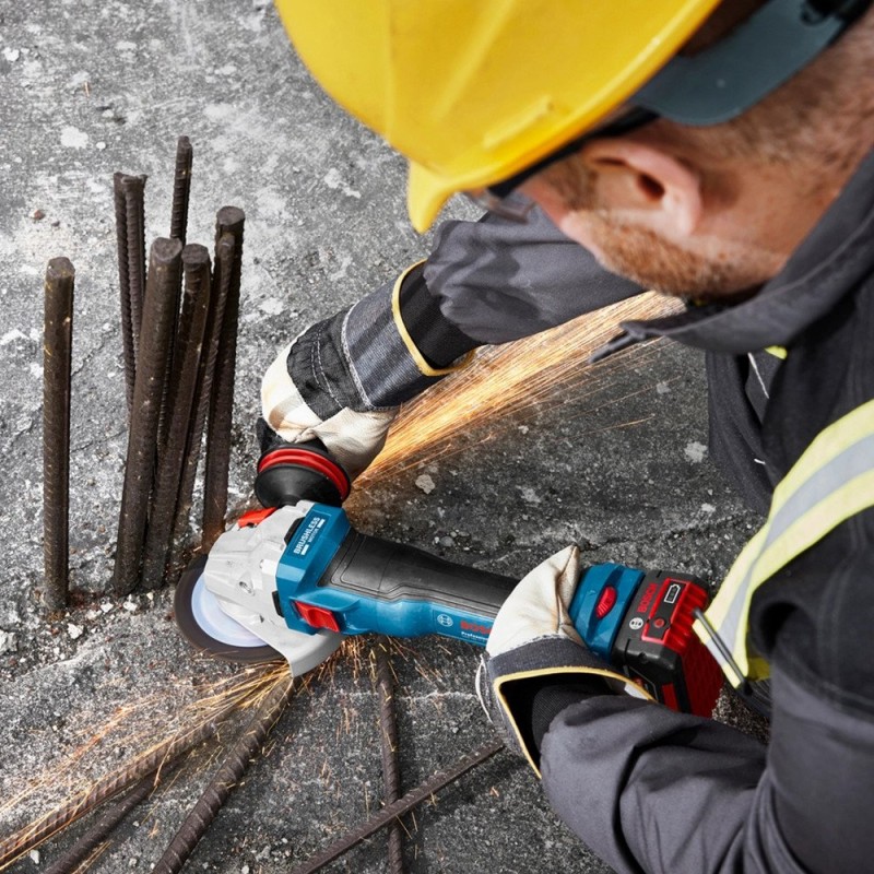 Der Bosch-Winkelschleifer GWS 18V-11 wurde mit Blick auf den Komfort des Anwenders entwickelt. Seine leichte Bauweise (1,7 kg ohne Akku) und der ergonomische Griff sorgen dafür, dass die Arbeit mit diesem Werkzeug bequem und weniger ermüdend ist, selbst bei längerem Einsatz.