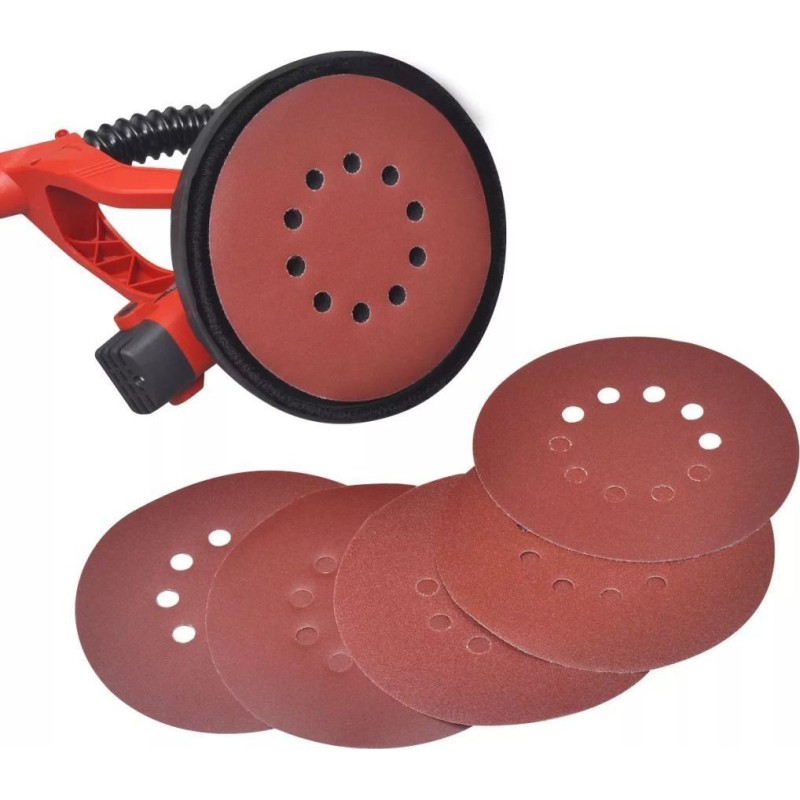 Der Trockenbauschleifer verfügt über einen flexiblen Staubabsaugschlauch, der sich bis zu 4 Meter ausziehen lässt, um den anfallenden Staub zuverlässig aufzufangen und den Arbeitsplatz sauber zu halten. Im Lieferumfang enthalten sind 6 Schleifscheiben (80, 100, 120, 150, 180, 240) mit grober und feiner Körnung. Der Lieferumfang umfasst außerdem 6 x Klemmen, 1 x Schraubendreher, 1 x Inbusschlüssel, 2 x Kohlebürsten und 1 x Feder.