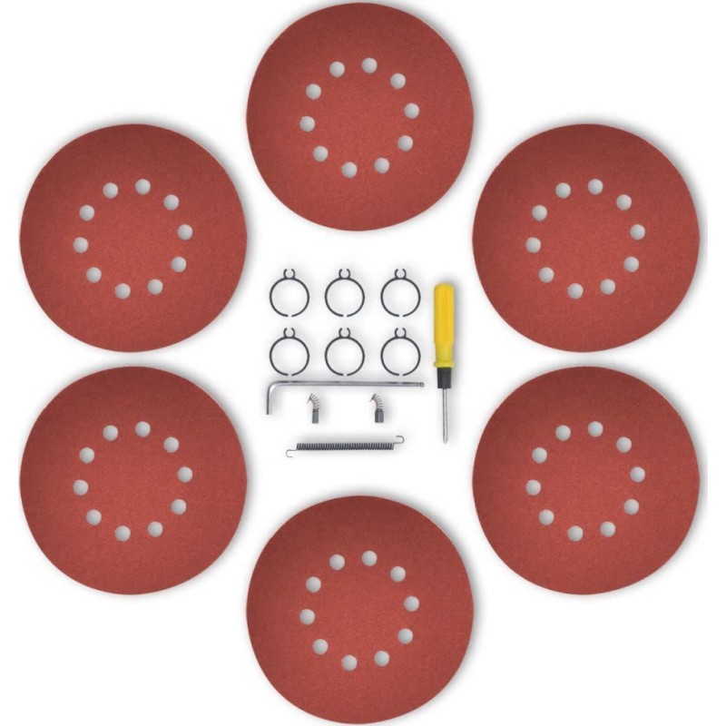 • 6 x Schleifscheibe (Körnung: 80, 100, 120, 150, 180, 240)