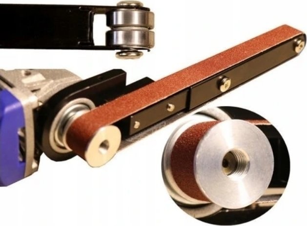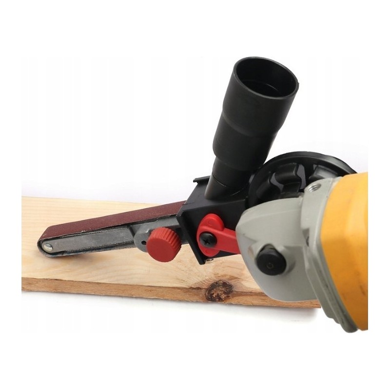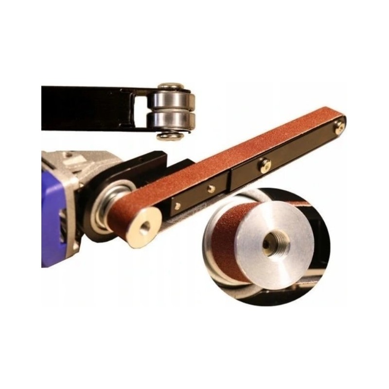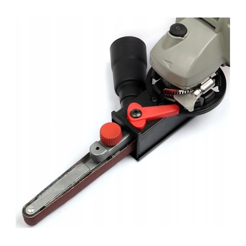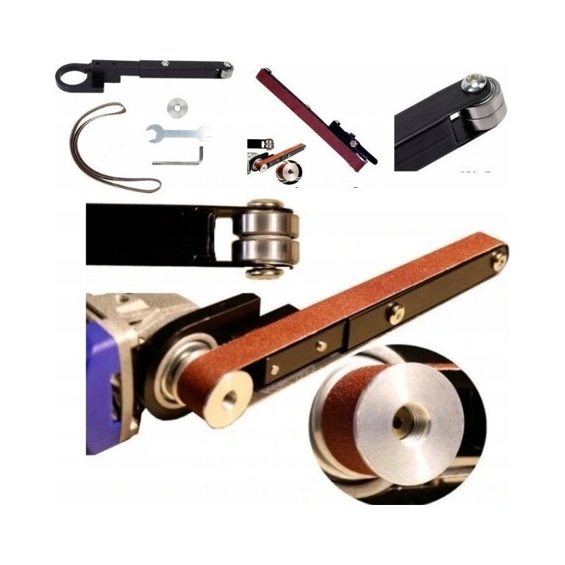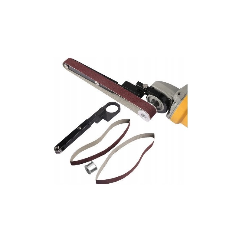 1. Einfacher Austausch: Mit diesen Aufsätzen für Bandschleifer lässt sich ein Winkelschleifer innerhalb einer Minute schnell in einen Bandschleifer umwandeln.