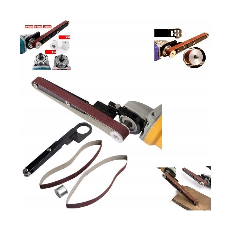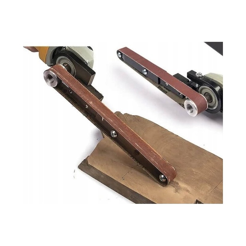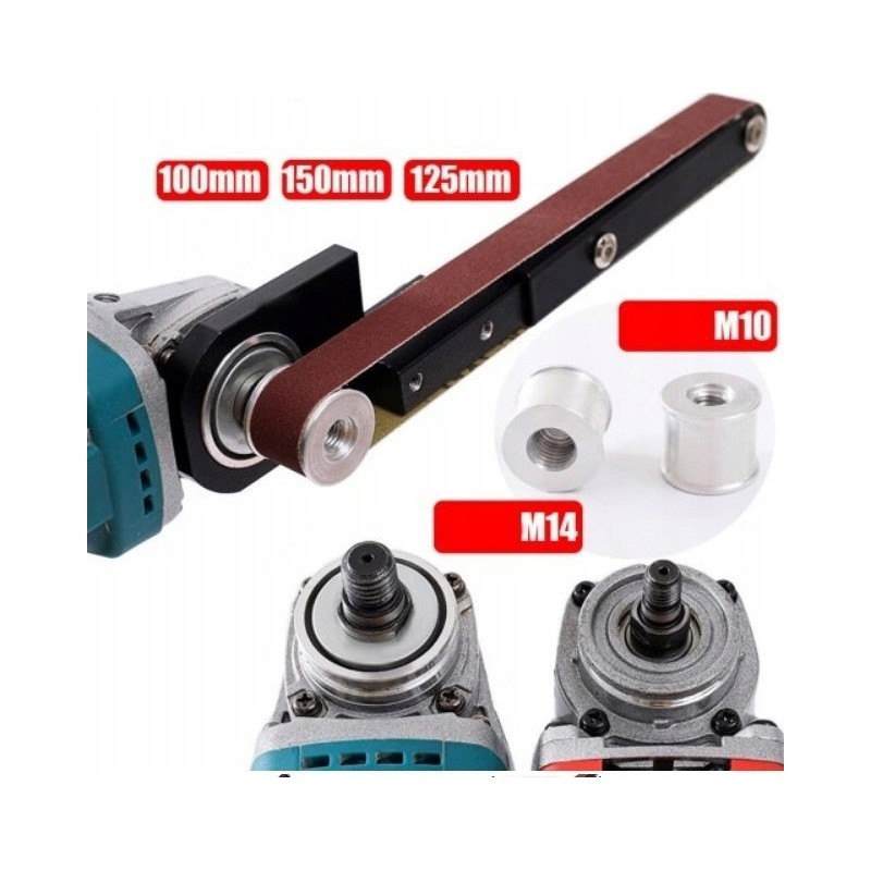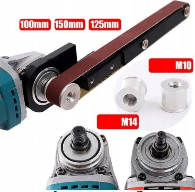 2. Kompatible Modelle: Dieser Bandschleifer-Adapter ist für Winkelschleifer der Modelle 100 und 125 ausgelegt, um sie in Maschinen mit Schleifband einzusetzen.