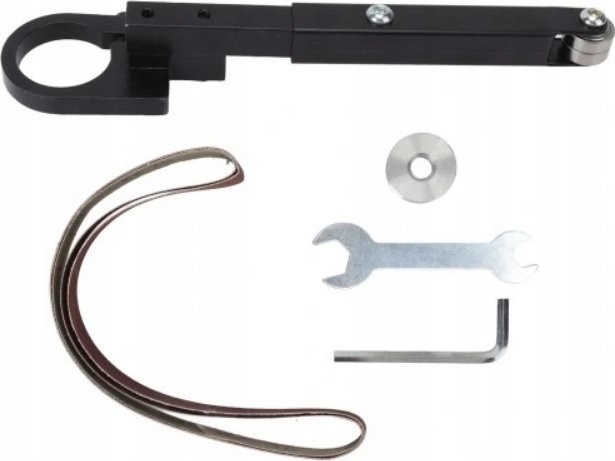 4. Einfache Montage: Diese Bandschleifaufsätze lassen sich mit dem im Lieferumfang enthaltenen Schraubenschlüssel leicht montieren.