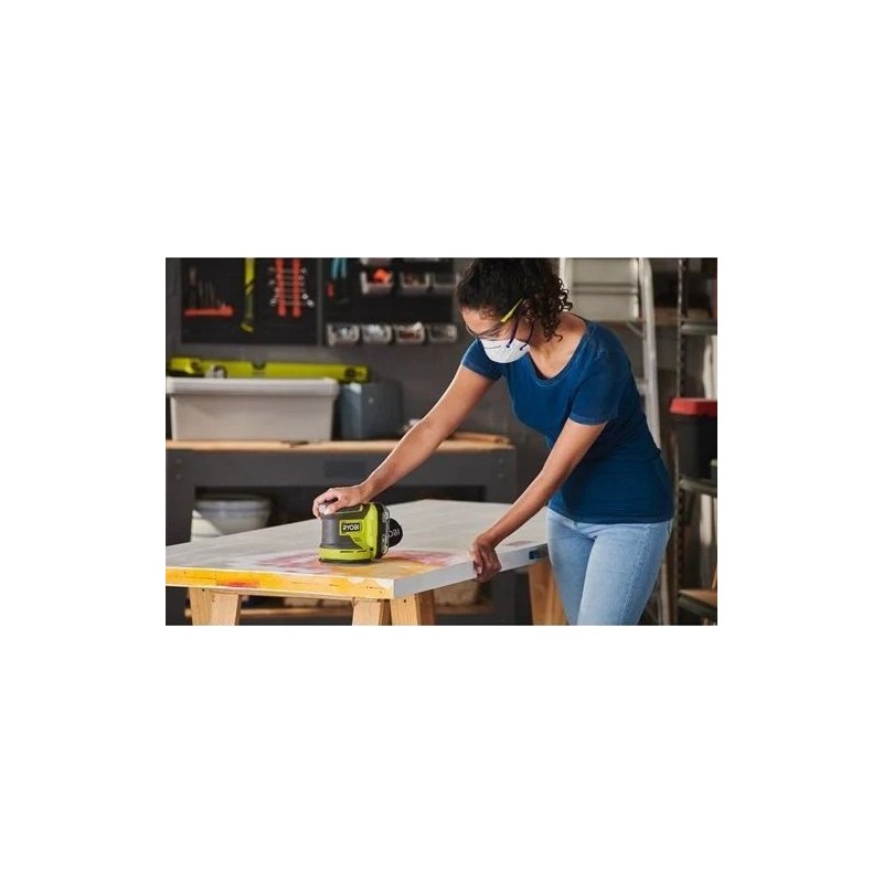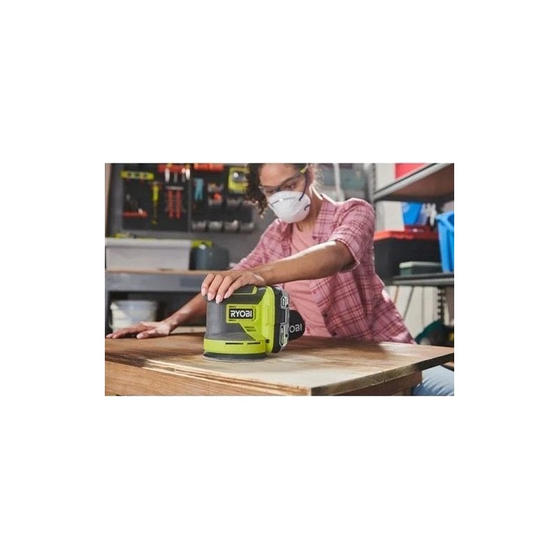 Der Exzenterschleifer RROS18-0 18V ONE+ eignet sich ideal zum Schleifen von Oberflächen oder zum Entfernen von Farbe. Er ist