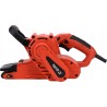 Leistungsstarker 1010-W-Bandschleifer, der dank einer schwenkbaren Abdeckung über dem Band im vorderen Teil der Maschine das Schleifen an schwer zugänglichen Stellen ermöglicht