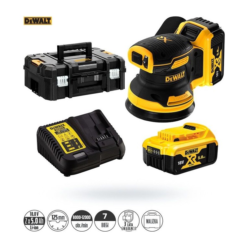 Dewalt Exzenterschleifer 18 V, 125 mm, 2x5,0 Ah (DCW210P2-QW)
