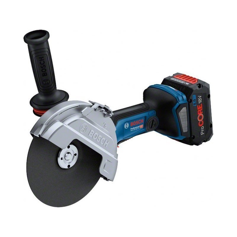 Technische Daten: Gewinde der Schleifspindel: M14Bohrungsdurchmesser: 22,2 mmAbmessungen des Werkzeugs (Breite): 114 mmAbmessungen des Werkzeugs (Länge): 334 mmAbmessungen des Werkzeugs (Höhe): 309 mmAkkuspannung: 18,0 VLeerlaufdrehzahl: 6.100 min-1Gewicht ohne Akku: 2,8 kgDurchmesser der Gummischleifscheibe: 180 mmSchalldruckpegel: 86 dB(A)Schallleistungspegel: 94 dB(A)Messabweichung K: 3 dBMax. Nenndrehzahl im Leerlauf: 7.000 1/minWerkzeugeSchleif-/Trennscheibe: 180 mmPositionierungSchnitttiefe wie bei großen Winkelschleifern bei Beibehaltung des Formats und Gewichts eines kleinen WinkelschleifersVorteile für den AnwenderDank der 180-mm-Scheibe und des kleinen Getriebekopfes erreicht das Elektrowerkzeug die gleiche Schnitttiefe wie ein großer 230-mm-Winkelschleifer, ist aber 35 % leichter. Die BITURBO Brushless-Technologie sorgt für schnelles Schneiden in vielen verschiedenen Materialien wie Metall, Beton, Ziegel und Keramikfliesen. Der „PROtection Switch“-Not-Aus-Schalter, die intelligente Bremse und die KickBack Control-Funktion gewährleisten einen hohen Sicherheitsstandard für den Anwender. 1 Diamant-Trennscheibe Standard for Universal, 180 x 22,23 mm2 608 615 063Kartonverpackung**...