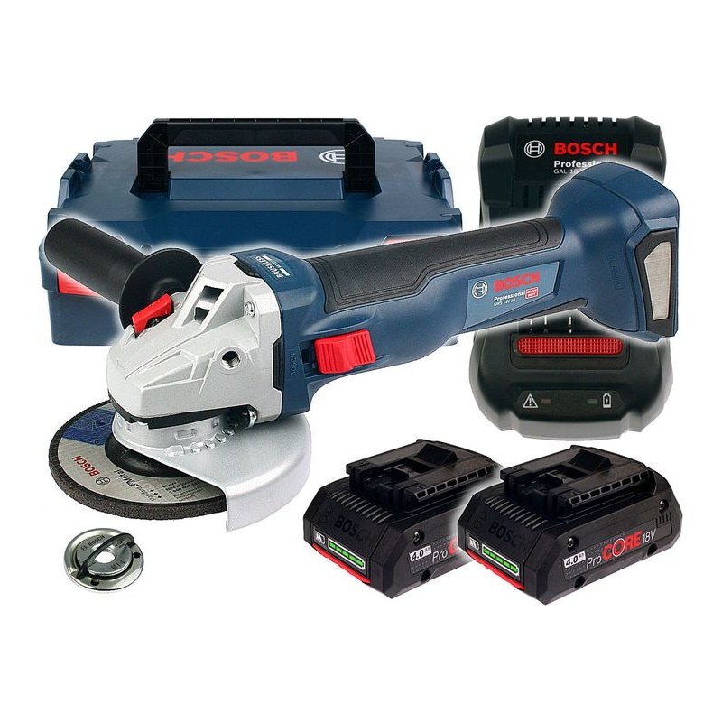 Der Akku-Winkelschleifer mit bürstenlosem Motor GWS 18V-10 von Bosch (06019J4004) ist ein kleiner Winkelschleifer für 125-mm-Scheiben, der sich für professionelle Anwendungen eignet. Das Elektrowerkzeug ist mit einer Reihe von Funktionen ausgestattet, die die Arbeitssicherheit erhöhen. Es zeichnet sich zudem durch eine robuste und ergonomische Konstruktion aus. Dank des 18-V-Lithium-Ionen-Akkus und des bürstenlosen Motors bietet das Werkzeug eine hohe Leistungsfähigkeit und gewährleistet gleichzeitig freies und komfortables Arbeiten an jedem Ort.