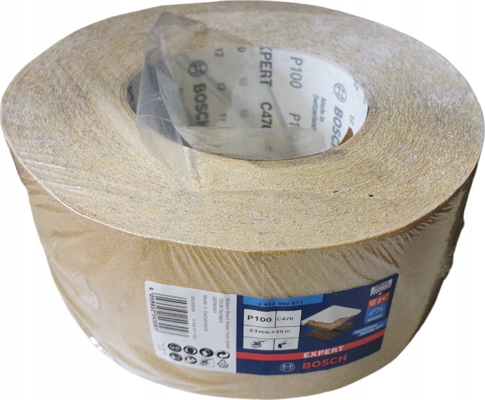Schleifpapier Bosch Expert C470, 93 mm, K100 (50-Meter-Rolle, für Exzenterschleifer, zum Handschleifen)