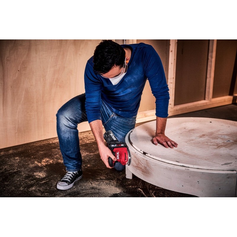 Der Akku-Exzenterschleifer Modell 3746 von SKIL ist die perfekte Wahl für jeden Heimwerker. Dank seiner Vielseitigkeit eignet er sich hervorragend zum Schleifen, Reinigen und Polieren verschiedener Oberflächen wie Holz, Metall, Kunststoff und sogar Glas und Stein. Der runde Schleifteller mit Klettbefestigung ermöglicht ein einfaches und effektives Schleifen sowohl von flachen als auch von gewölbten Oberflächen.