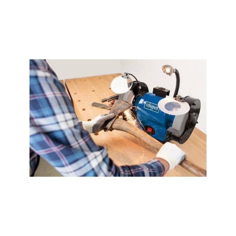 Zudem ist die große, flexible Arbeitsleuchte mit separatem Schalter praktisch, wenn du deinen Arbeitsbereich beleuchten musst. Die Tischschleifmaschine ist mit groben und feinen Schleifscheiben ausgestattet.