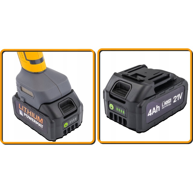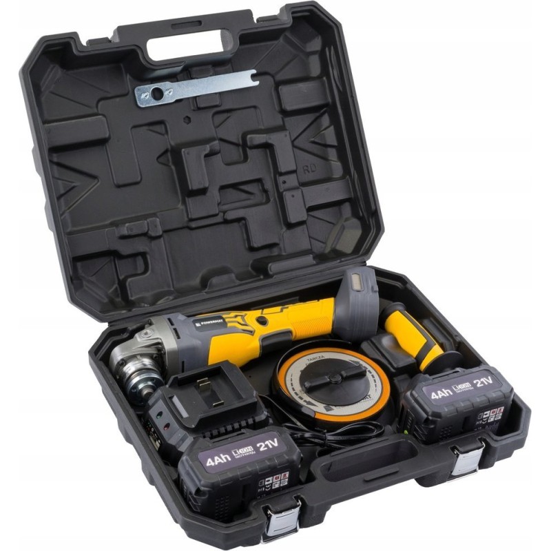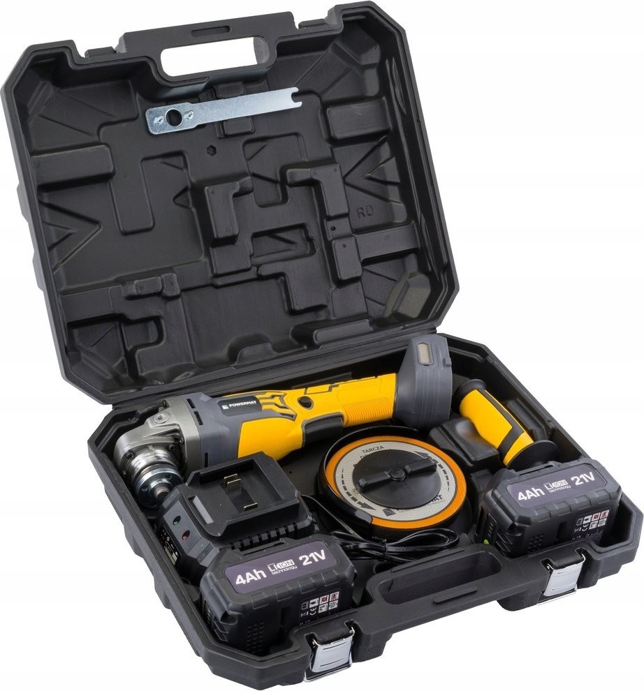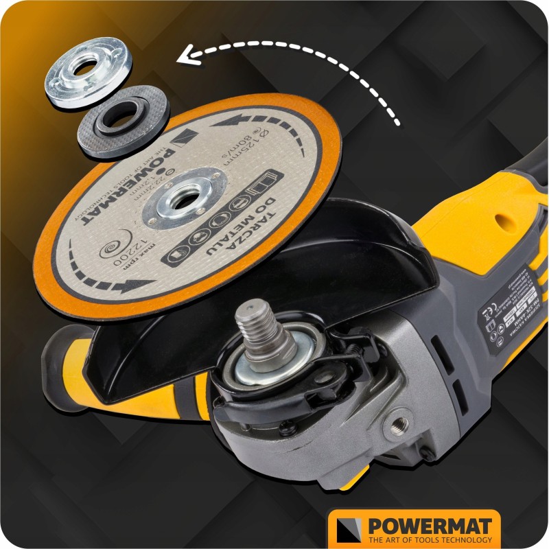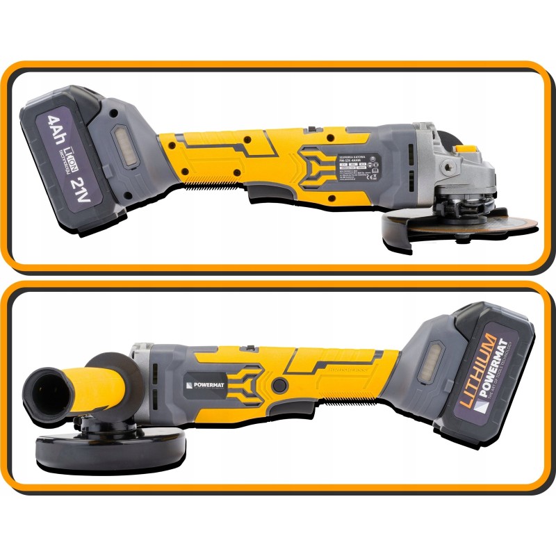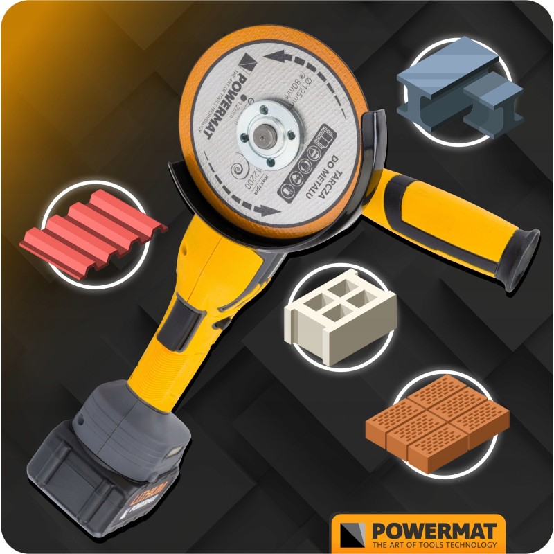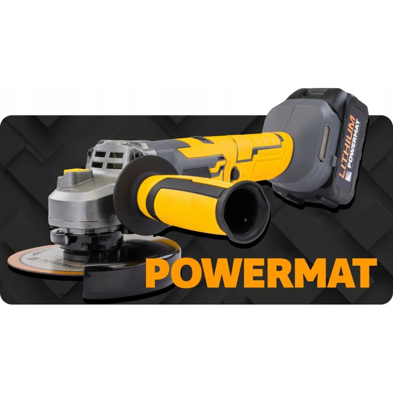Der Akku-Winkelschleifer Powermat ist ein mobiles und effizientes Werkzeug, das das Schneiden, Schleifen und Polieren verschiedener Materialien ermöglicht. Dank der Akku-Stromversorgung gewinnt der Anwender Bewegungsfreiheit ohne Einschränkungen durch Kabel. Dies ist eine hervorragende Lösung sowohl für die Werkstatt als auch für Renovierungsarbeiten.
