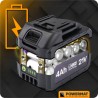 Zwei Lithium-Ionen-Akkus mit einer Kapazität von 4000 mAh sorgen für eine lange Betriebszeit und die Möglichkeit, sie abwechselnd aufzuladen, was einen unterbrechungsfreien Betrieb ermöglicht, ohne dass man sich Sorgen um einen Energieverlust machen muss.