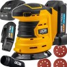 Professioneller Exzenterschleifer ► Staubabsaugsystem ► Hohe Leistung ► Komfortable und ergonomische Form ► Kompakte Größe ► Drehzahlregelung ► Klettverschluss ► 2,0-Ah-Akku ► Ladegerät ► Transporttasche