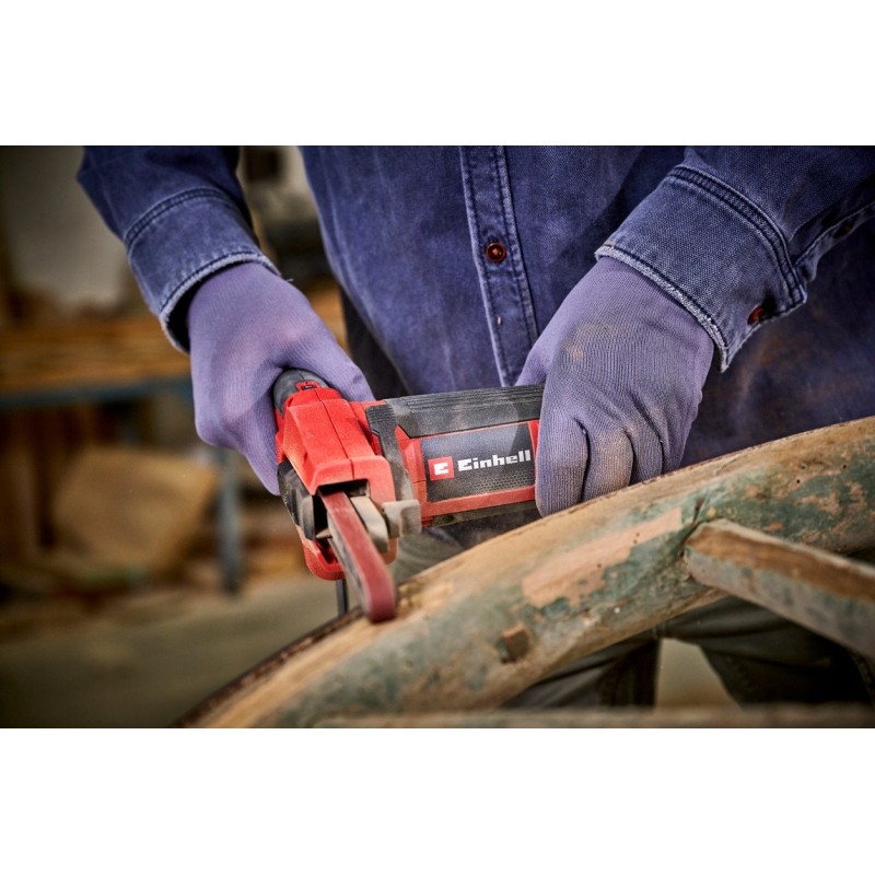 Die hohe Bandgeschwindigkeit sorgt für effizientes Schleifen, was den Bearbeitungsprozess erheblich beschleunigt. Ganz gleich, ob Sie an kleinen Details oder größeren Flächen arbeiten, der Einhell TC-BF 500 E wird Ihren Erwartungen gerecht.