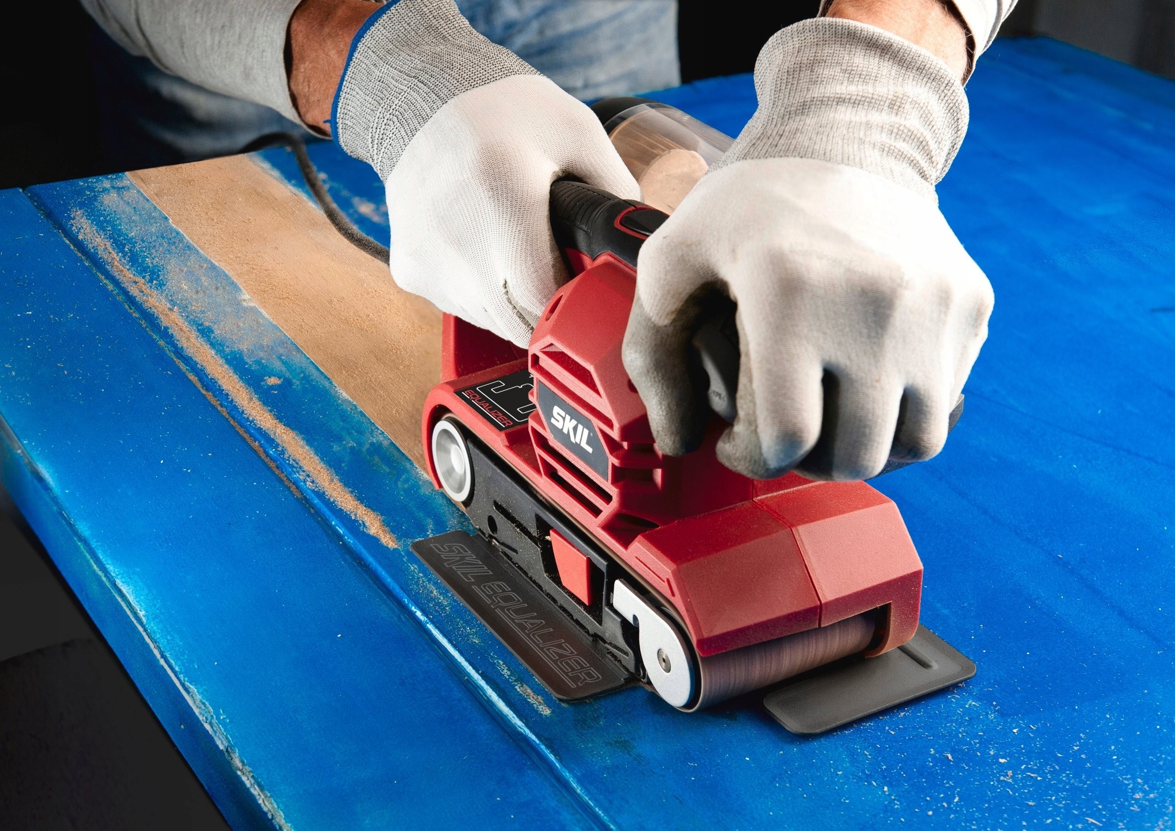 Diese Art von Schleifmaschinen erfordert die Verwendung von Schleifband. Sie eignen sich besonders zum Schleifen größerer Flächen. Ein Vorteil der Bandschleifmaschine kann ihre hohe Arbeitsgeschwindigkeit sein. Viele Modelle sind mit einer elektronischen Vorschubgeschwindigkeitsregelung und einem Staubabsaugsystem ausgestattet. Das Arbeiten bei niedrigeren Drehzahlen garantiert überdurchschnittliche Präzision. Beim Grobschliff hingegen empfiehlt es sich, die Drehzahl zu erhöhen.