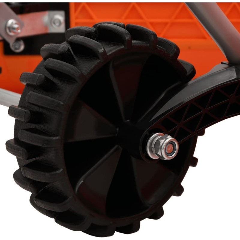 • Rutschfeste Räder: Das Profil der Räder erhöht die Reibungskraft des Schneepfluges und sorgt für Sicherheit beim Schneeräumen auf rutschigen, verschneiten Wegen. Die Räder sorgen dafür, dass die Schneeräumung schnell und geräuscharm vonstattengeht.