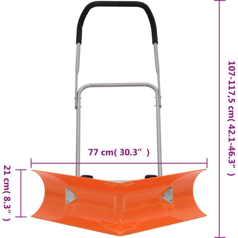 • Effektiver, beidseitig einsetzbarer Schneeschieber: Die V-förmige Schaufel misst 77 x 21 cm und kann so in einem Durchgang große Schneemengen effizient beseitigen. Dieser Schneeschieber löst zudem das Problem des manuellen Schneeschaffens, indem er den Schnee nach links und rechts vom Weg schiebt und so lästige Schneeverwehungen verhindert.