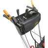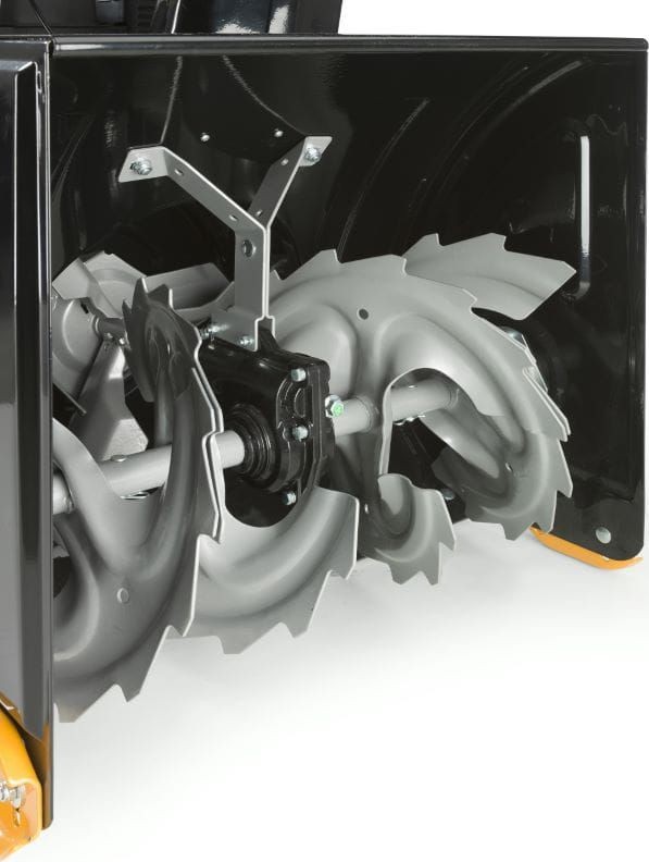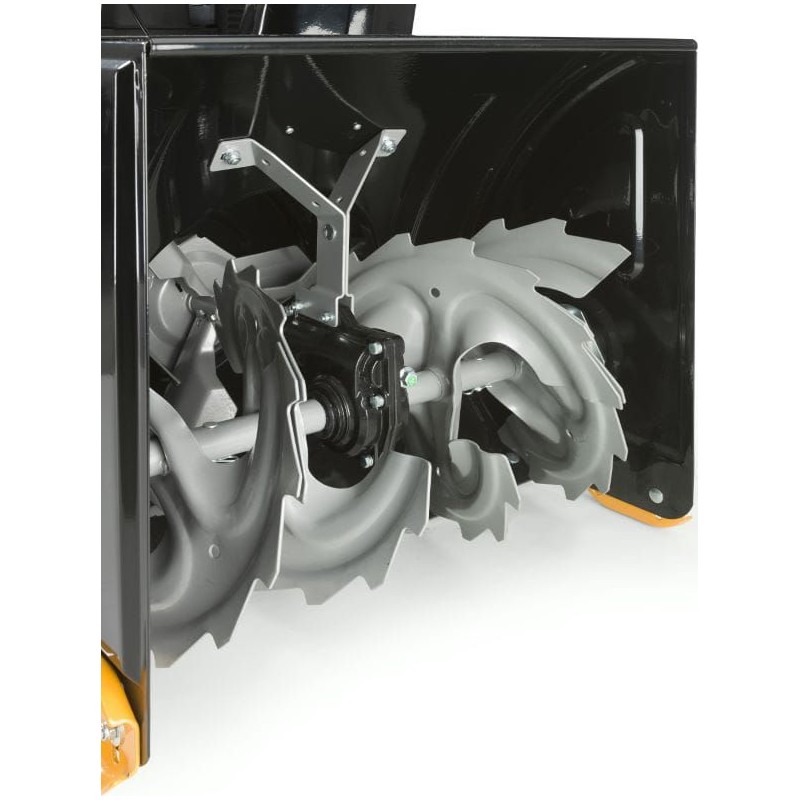 Das speziell entwickelte Schneckenfräsersystem mit einer Arbeitsbreite von bis zu 56 cm drückt den Schnee in das Gehäuse und wirft ihn anschließend durch den Auswurfschacht bis zu 10 m weit aus. Die Fräse besteht aus verstärktem, widerstandsfähigem Stahl – Schnee und Eis werden von den Fräsklingen zerkleinert, bevor sie in den Rotor gelangen. Die so konzipierte 2-stufige Arbeitsbaugruppe ist ideal und absolut sicher für Betonflächen wie Gehwege, Pflasterwege und vieles mehr. Der robuste Schneckenförderer ermöglicht den Einsatz sowohl bei gefrorenem als auch bei sehr nassem Schnee.