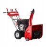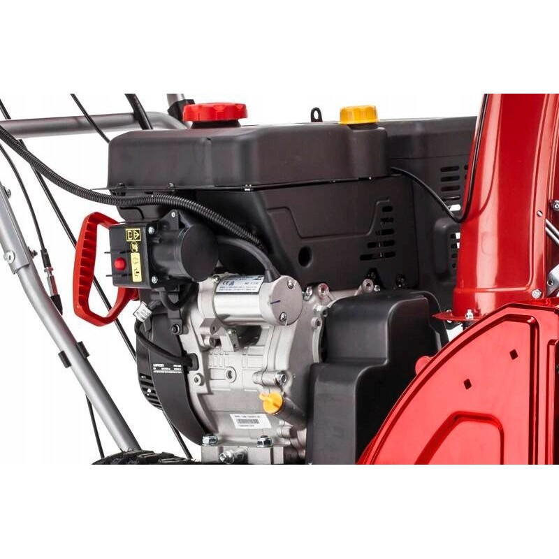 Das Gerät verfügt über einen Eigenantrieb, der auf große Gummiräder übertragen wird, was für hervorragende Traktion und Manövrierfähigkeit sorgt. Darüber hinaus ermöglicht ein zweistufiges Stahlzahnrad den Schneeauswurf auf eine maximale Entfernung von 15 m, was die Schneeräumung noch effektiver macht.