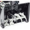 Die Schneeräummaschine verfügt über einen drehbaren Auswurfschacht, der im Bereich von 190 Grad verstellbar ist. Sowohl der Schacht als auch das Stahlgehäuse der Maschine sind sehr stoßfest.
