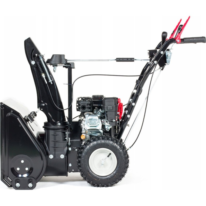 Die Maschine verfügt über einen Radantrieb, was die Arbeit erleichtert. Der Vorteil dieser Funktion besteht darin, dass beim Führen der Schneefräse keine Kraft aufgewendet werden muss.