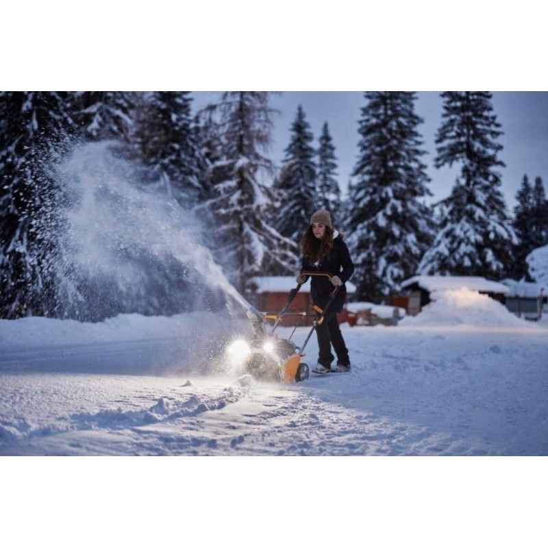 Die Schneefräse hat eine Räumbreite von 50 cm, was eine schnelle und effektive Schneeräumung ermöglicht. Dadurch werden Reinigungsarbeiten auf der Einfahrt oder dem Gehweg deutlich einfacher und schneller.