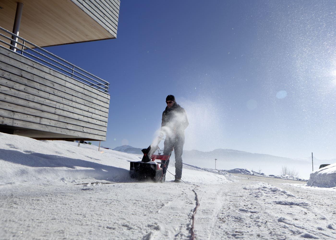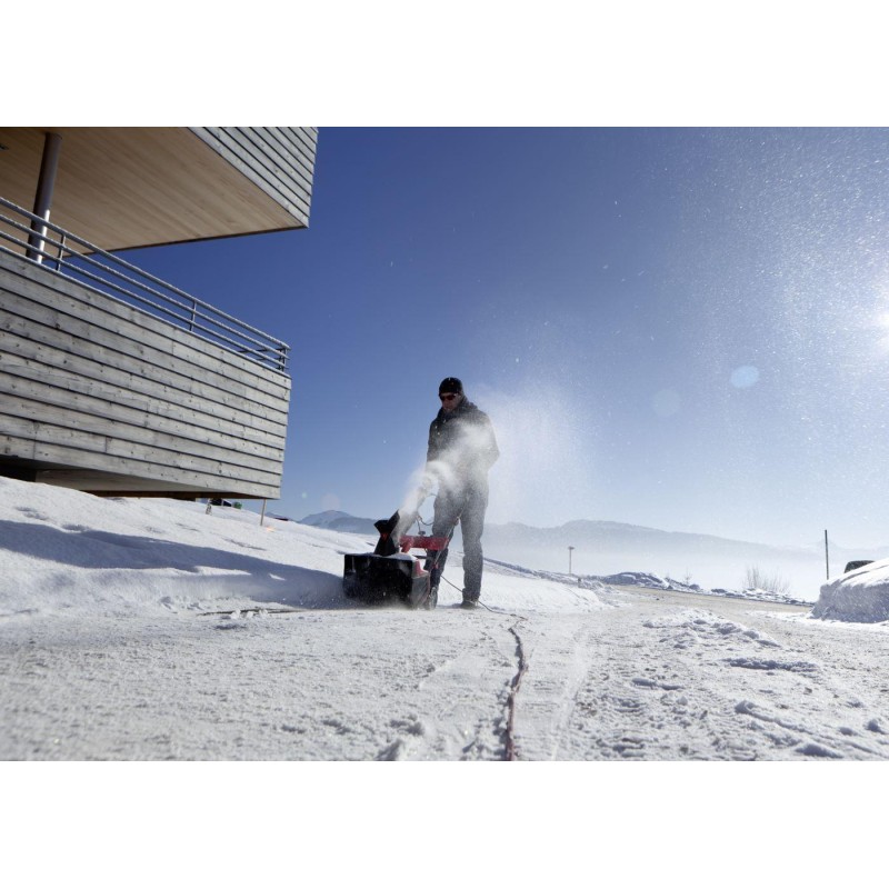 Die Schneefräse wird von einem umweltfreundlichen Elektromotor angetrieben. Dank ihres geringen Schallleistungspegels von nur 86 Dezibel (und damit fast so leise wie ein Elektromäher) ermöglicht sie das Schneeräumen auch in den frühen Morgenstunden in Wohngebieten, ohne die Umgebung zu stören. Die Räumbreite beträgt 46 Zentimeter, die Schneehöhe bis zu 30 Zentimeter. So lassen sich Flächen schon bei leichtem Schneefall vollständig räumen. Obwohl das Gerät mit 15 kg leicht und sehr wendig ist, sorgt es dank 2 kW auch an sehr schneereichen Tagen für eine hohe Räumleistung.