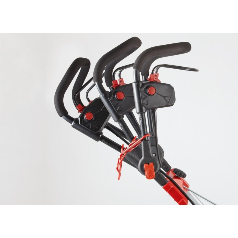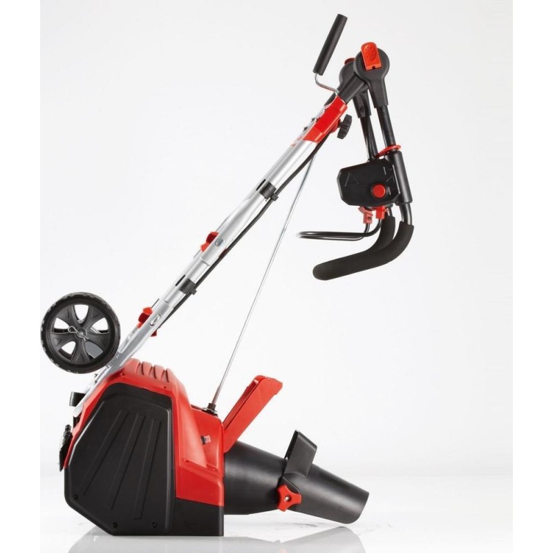 Der leistungsstarke 230-V-/2000-W-Elektromotor lässt sich einfach und sicher starten. Die Räumschaufel besteht aus einer Hartgummimischung mit eingebettetem Stahldraht. Der Schnee wird aus dem schwenkbaren Auswurfschacht (190 Grad) bis zu 10 Meter weit genau dorthin geworfen, wo Sie es wünschen. Die Höhe des Lenkers lässt sich mit einer Schnellverschlussvorrichtung ganz einfach an die Körpergröße des Benutzers anpassen – ohne Werkzeug und in nur 2 Schritten. Ein praktischer Tragegriff erleichtert den Transport. Darüber hinaus überzeugt die SNOWLINE 46 E durch eine unkomplizierte Montage ohne Werkzeug. Und wenn kein Schnee liegt, lässt sich die Schneefräse dank des klappbaren Griffs schnell zusammenklappen, sodass sie wenig Platz beansprucht.
