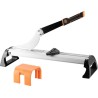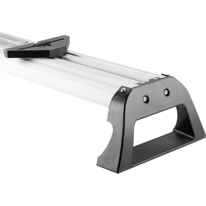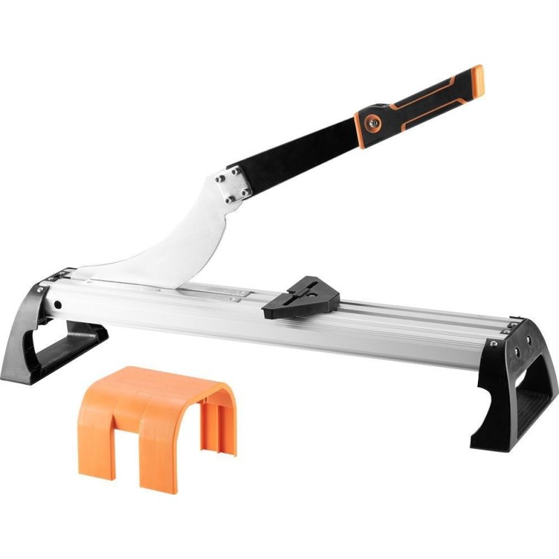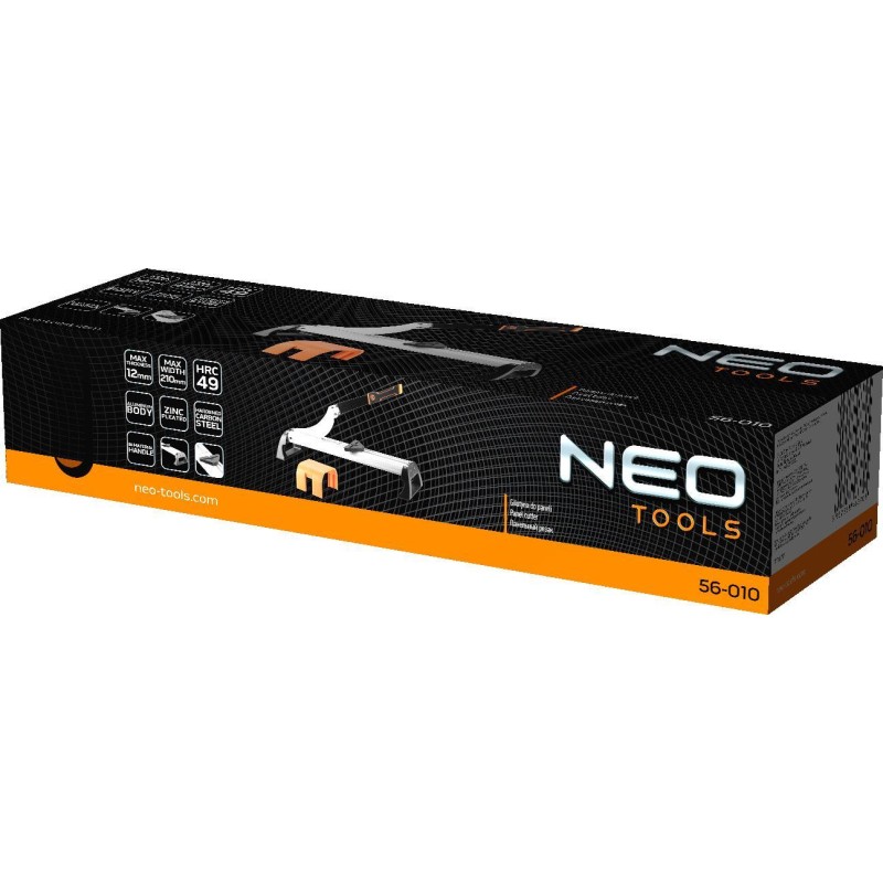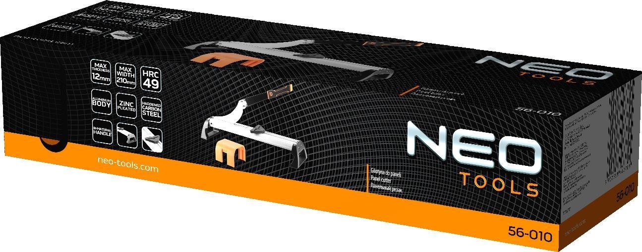 Paneelschneider, Gehäuse aus Aluminium, verzinkte Oberfläche, Klinge aus gehärtetem Kohlenstoffstahl, Härte 49 HRC, max. Schnittbreite 210 mm, max. Paneeldicke 12 mm, Zweikomponenten-Griff, Kunststoff-Paneelhalterung, Kunststoff-Stützfüße