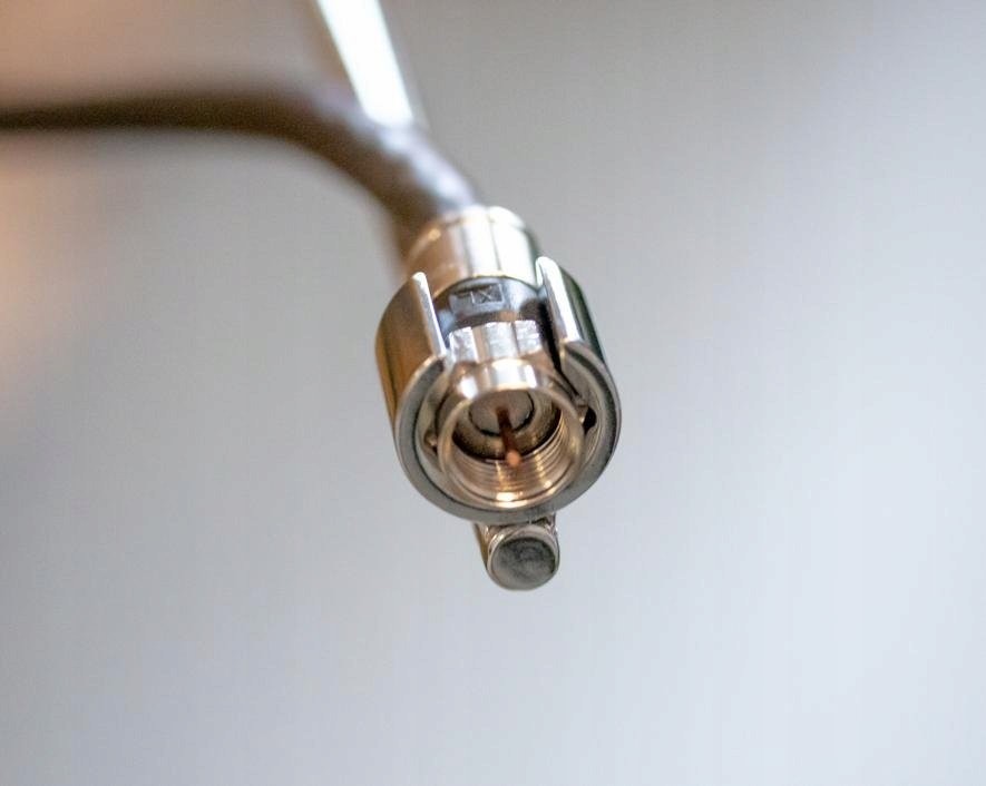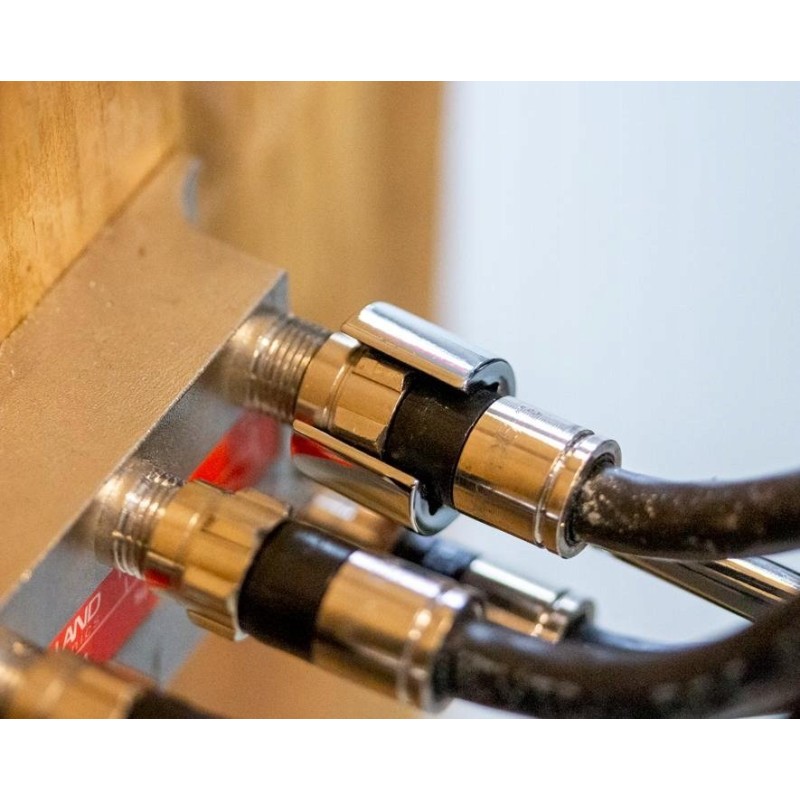 - Die Mutter an der Welle ermöglicht das Festziehen mit einem Schraubenschlüssel, um stark korrodierte oder verrostete F-Stecker zu entfernen