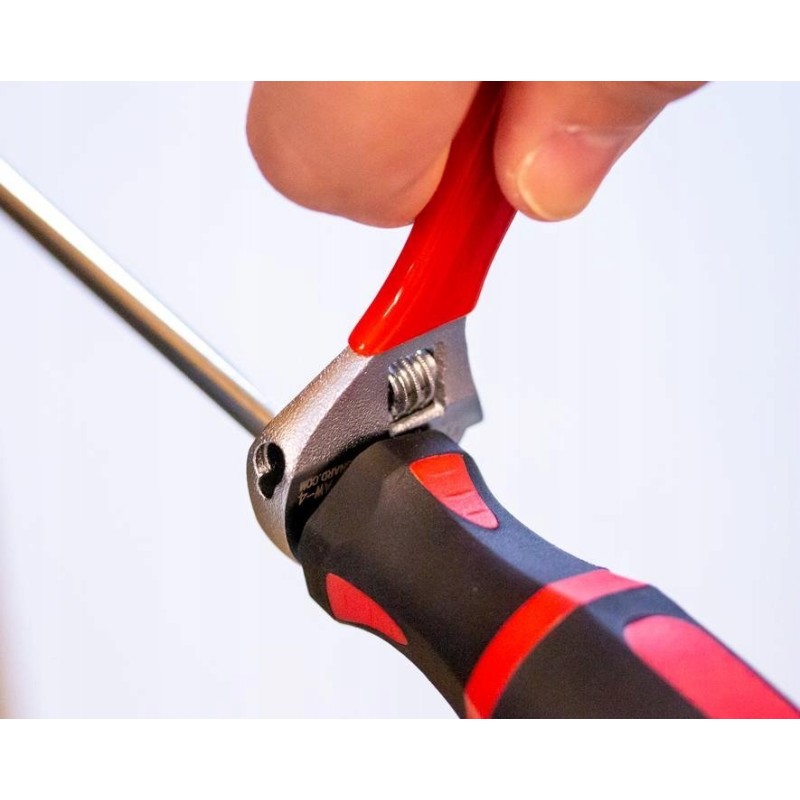- Die Konstruktion mit kurzem Kopf ermöglicht das Greifen von F-Verbindungen an eng beengten Stellen, an denen Kabel verdreht oder geknickt sein können