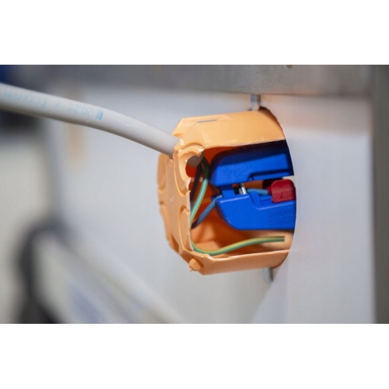 Das Abisolierwerkzeug verfügt über einen integrierten Seitenschneider, der für Kupfer- und Aluminiumkabel mit einem Durchmesser von bis zu drei Millimetern geeignet ist.