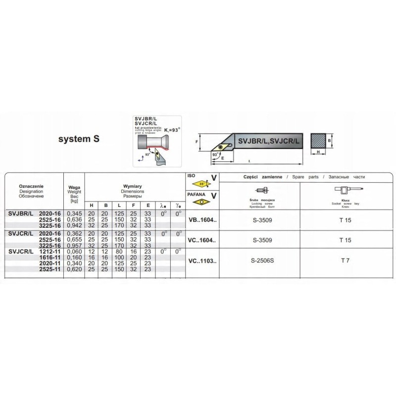 Technische Daten des Drehmeißels SVJBR 2525-16