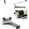 Mit der MSW-Paneel-Schneidemaschine lassen sich Dielen mühelos und ohne Absplitterungen zuschneiden. Die Maschine wird manuell und ohne Strom betrieben. Zudem lässt sich der Schnittwinkel einstellen. Der lange Hebel sorgt für eine optimale Kraftübertragung. Er ermöglicht präzises Schneiden der Paneele bei geringem Kraftaufwand. Außerdem erleichtert er das Schneiden von Dielen mit einer Dicke von bis zu 16 mm . Die Schnittbreite beträgt 230 mm . Das Gerät eignet sich zur Bearbeitung von MDF-, VCT- und PVC-Platten, Teppich-, Gummi- und Vinylfliesen, Leder sowie Vinyl- und Zementspanplatten für Fassaden. Die Schneidemaschine erzeugt weniger Staub als eine elektrische Säge, und die Schnittkanten sind stets perfekt.