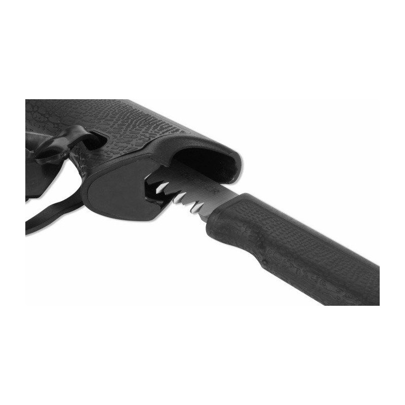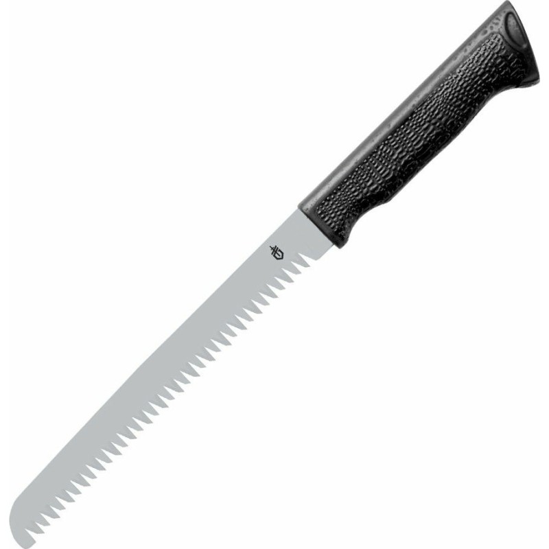 Das Sägeblatt aus rostfreiem Stahl ist mit zwei Reihen aggressiver, hervorragend schneidender Zähne ausgestattet. Der Griff der Säge besteht ebenfalls aus glasfaserverstärktem Nylon und Gummi. Eine magnetische Verriegelung und eine Gummiabdeckung verhindern, dass die Säge aus dem Schaft fällt.