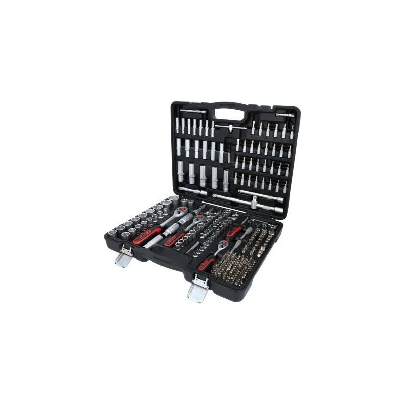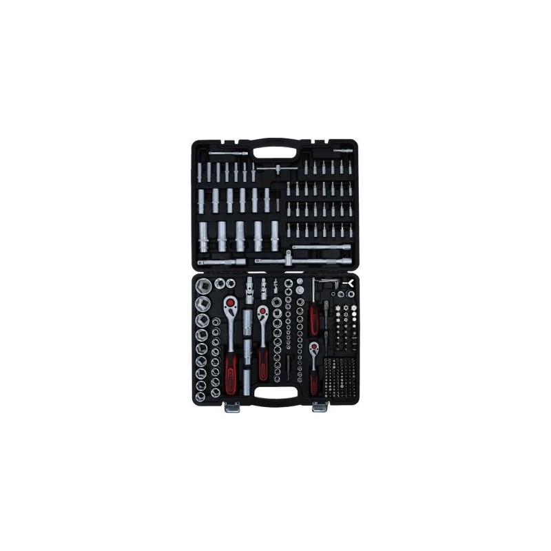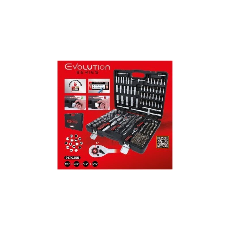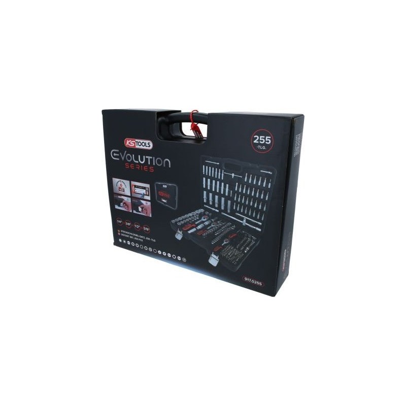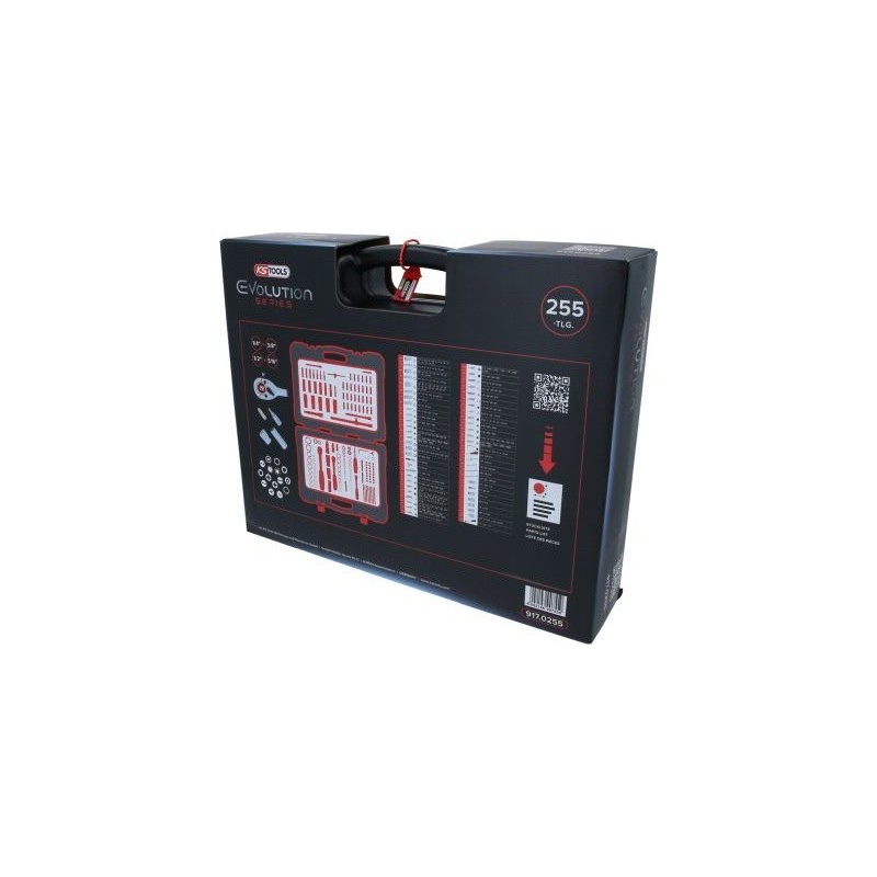 •Sechskant•FlankTraction-Profil•satinierte Oberfläche•Chrom-Vanadium•in einem robusten Kunststoffkoffer Steckschlüsselsatz, 255-teilig 1/4+3/8+1/2