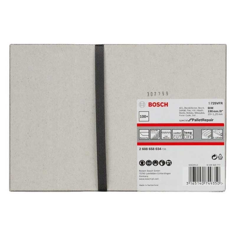 • Das Sägeblatt für die Säbelsäge S 725 VFR Special for Pallet Repair ist widerstandsfähig gegen Beschädigungen und eignet sich für den Dauereinsatz beim Schneiden von Holz und Metall.