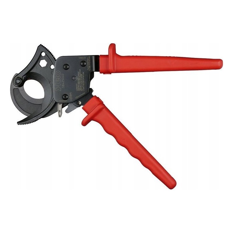 • Die kompakten FELO-Kabel-Ratschenzangen sind für das bequeme und präzise Schneiden von Kabeln konzipiert. Sie verfügen über einen zuverlässigen Ratschenmechanismus, der das Schneiden von dicken Kupfer-, Aluminium-, Massiv- und Litzenkabeln mit minimalem Kraftaufwand ermöglicht. Die Schere verfügt über eine Griffarretierung, die ein versehentliches Schließen der Schneidkanten verhindert und so eine sichere Aufbewahrung und einen sicheren Transport gewährleistet. Die Kabelschneidklingen können in jeder Position entriegelt werden. Die Kunststoffgriffe sorgen für einen sicheren Halt und verhindern ein Abrutschen der Hand während der Arbeit. Die Schere ist kompakt und leicht, wodurch sie sich ideal für Arbeiten auf engstem Raum eignet. Sie besteht aus robustem Werkzeugstahl, der die Haltbarkeit und Lebensdauer des Werkzeugs erhöht. Die Oberfläche ist mit schwarzem Lack beschichtet, der vor Korrosion schützt.