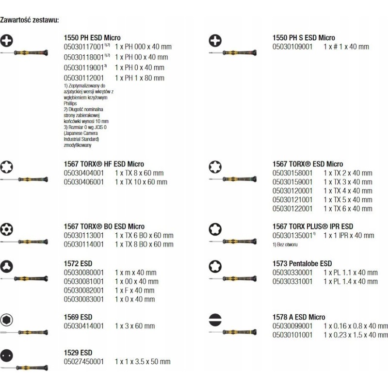 Technische Daten des Sets Wera Kraftform Micro ESD Big Pack 1