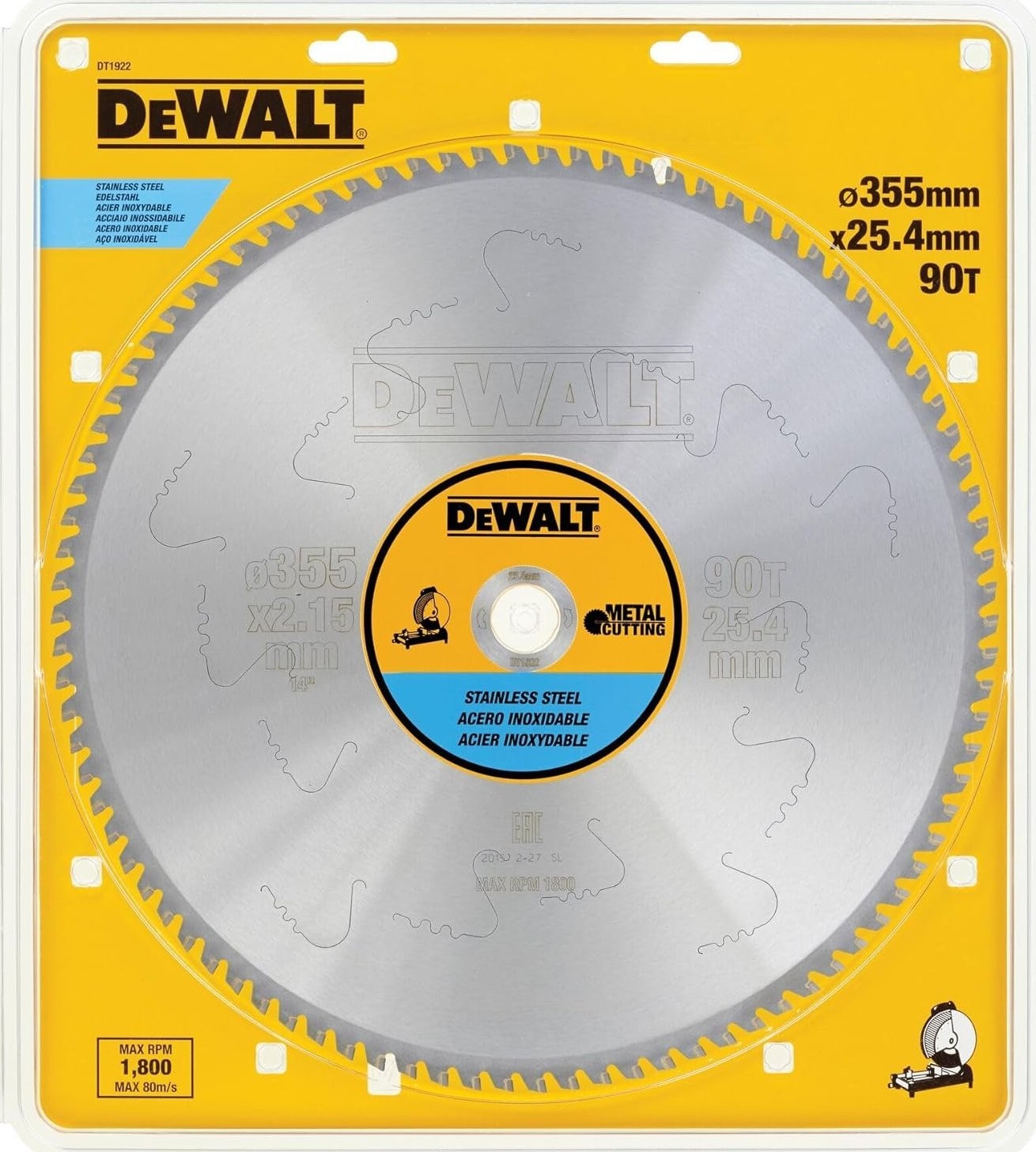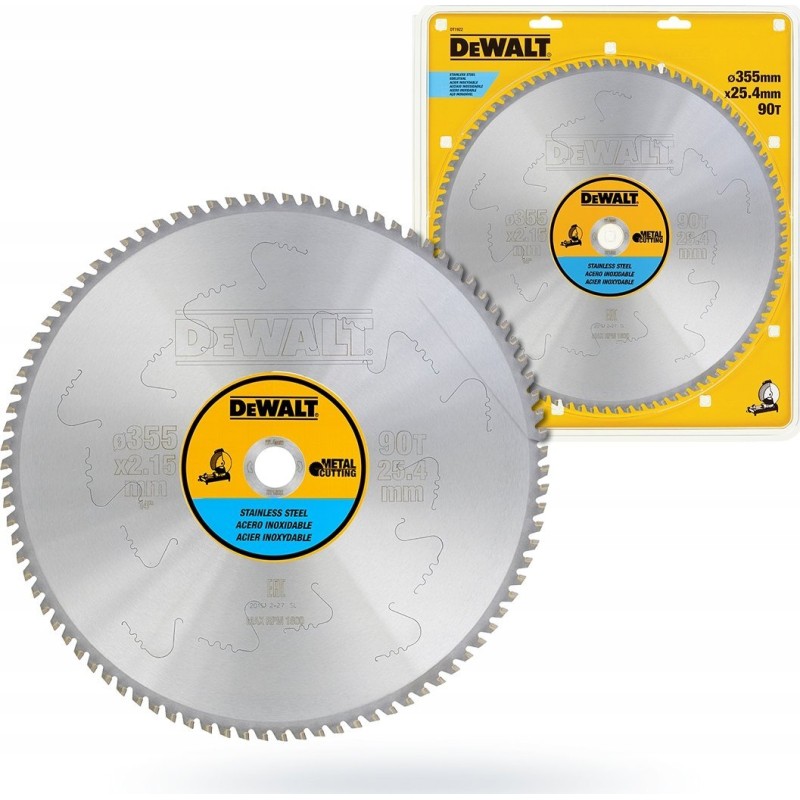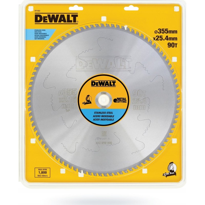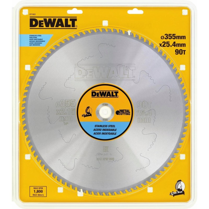 DT1922 DeWALT-Sägeblatt zum Kaltschneiden von Edelstahl, 355 x 90 Zähne, Durchmesser 25,4 mm, für DW872