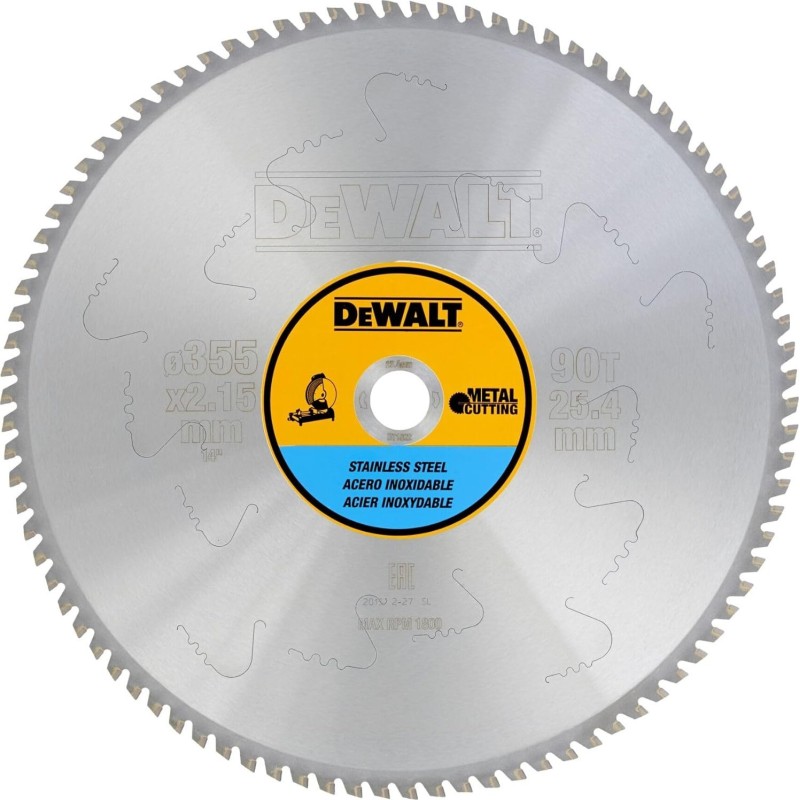 Sägeblatt zum Schneiden von Edelstahl 355 x 90T, Durchmesser 25,4 mm, DeWALT