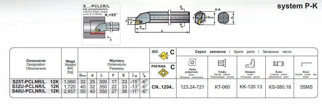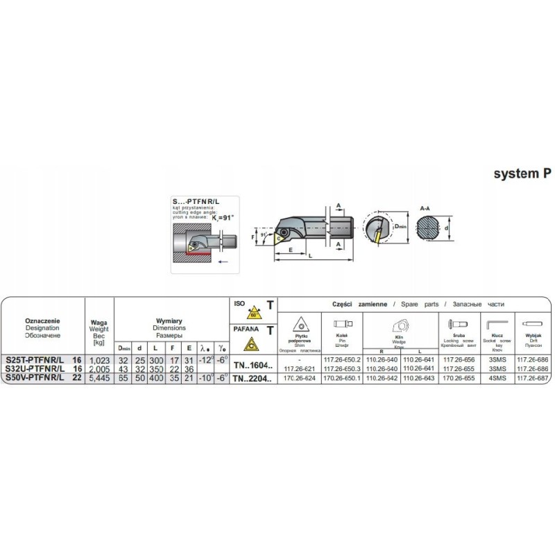 Technische Daten des klappbaren Drehmeißels S25T CTFPR16
