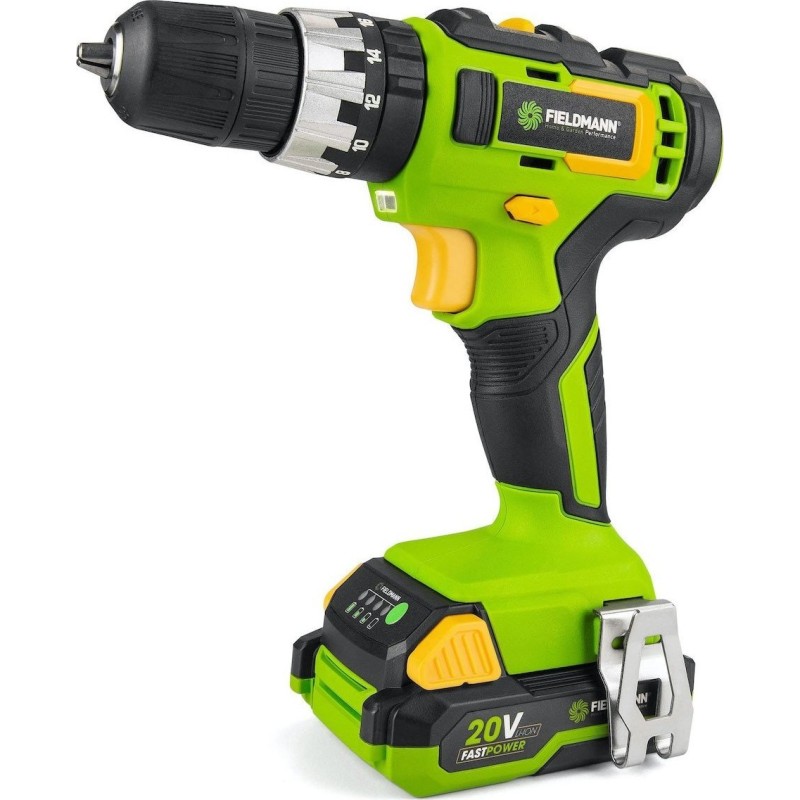 Die Bohrmaschine wird in einem praktischen Kunststoffkoffer mit Schnellladegerät und einem 2-Ah-Akku geliefert, die mit allen Produkten der FIELDMANN-Serie FAST POWER 20V kompatibel sind.