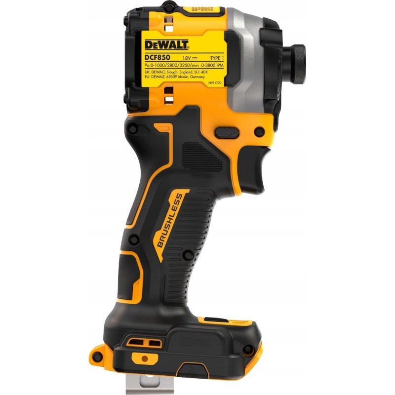 Der subkompakte DeWALT DCF850 Schlagschrauber mit bürstenlosem Motor und einem maximalen Drehmoment von bis zu 206,2 Nm. Dank modernster Technologien ist es den Ingenieuren von DeWALT gelungen, ein so hohes Drehmoment in einem nur 101 mm langen Gehäuse unterzubringen. Die kompakten Abmessungen des Schraubers ermöglichen das Arbeiten in engen Räumen; an schattigen Stellen beleuchtet ein aus 3 LEDs bestehender Leuchtring den Arbeitsbereich. Der bürstenlose Motor der neuesten Generation hat eine Leistung von 475 W und verbraucht deutlich weniger Strom als Bürstenmotoren. Um die richtigen Betriebsparameter einzustellen, ist der Schrauber mit 3 Gängen ausgestattet. Gang 1 dient zum sicheren Anziehen von Schrauben und Bolzen und verringert das Risiko von Materialbeschädigungen.