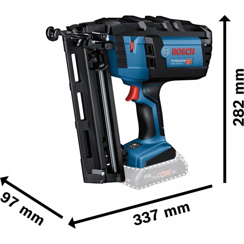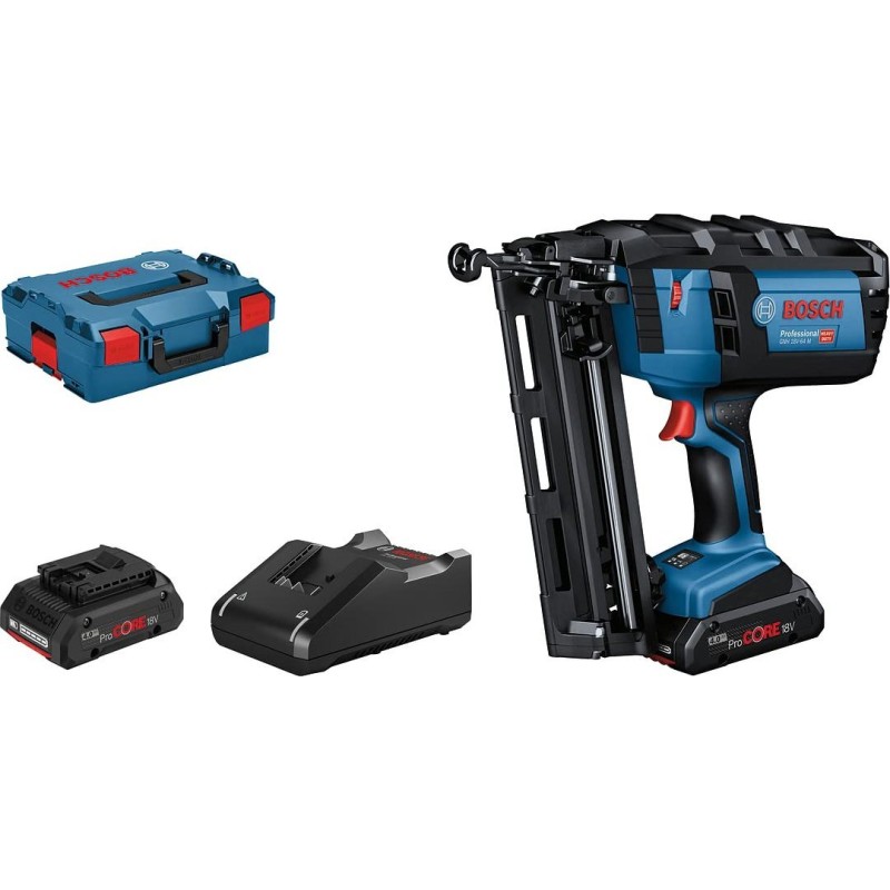 Bosch Professional 18-V-Akku-Nagler GNH 18 V-64 M (max. Nageldurchmesser 1,6 mm, Nagellänge 64 mm, 2 x ProCORE18 V 4,0 Ah-Akku, Ladegerät GAL 18 V-40, in L-BOXX 136)