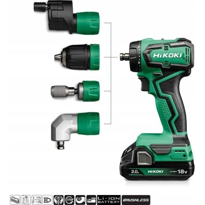 Hikoki HIKOKI 18-V-Akkuschrauber DS18DDQWRZ 55 Nm 2x2,0 Ah BL mit austauschbaren HITSYSTEM-Aufsätzen